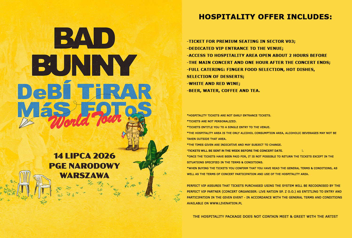 Perfect VIP conducts through the System the sale of Tickets for the Event carried out by Perfect VIP's partner (Event organiser: Live Nation sp. z o. o.). Therefore Perfect VIP declares that:  a) it is not the organiser of the Event; as well as b) it is not responsible for the course of the Event.