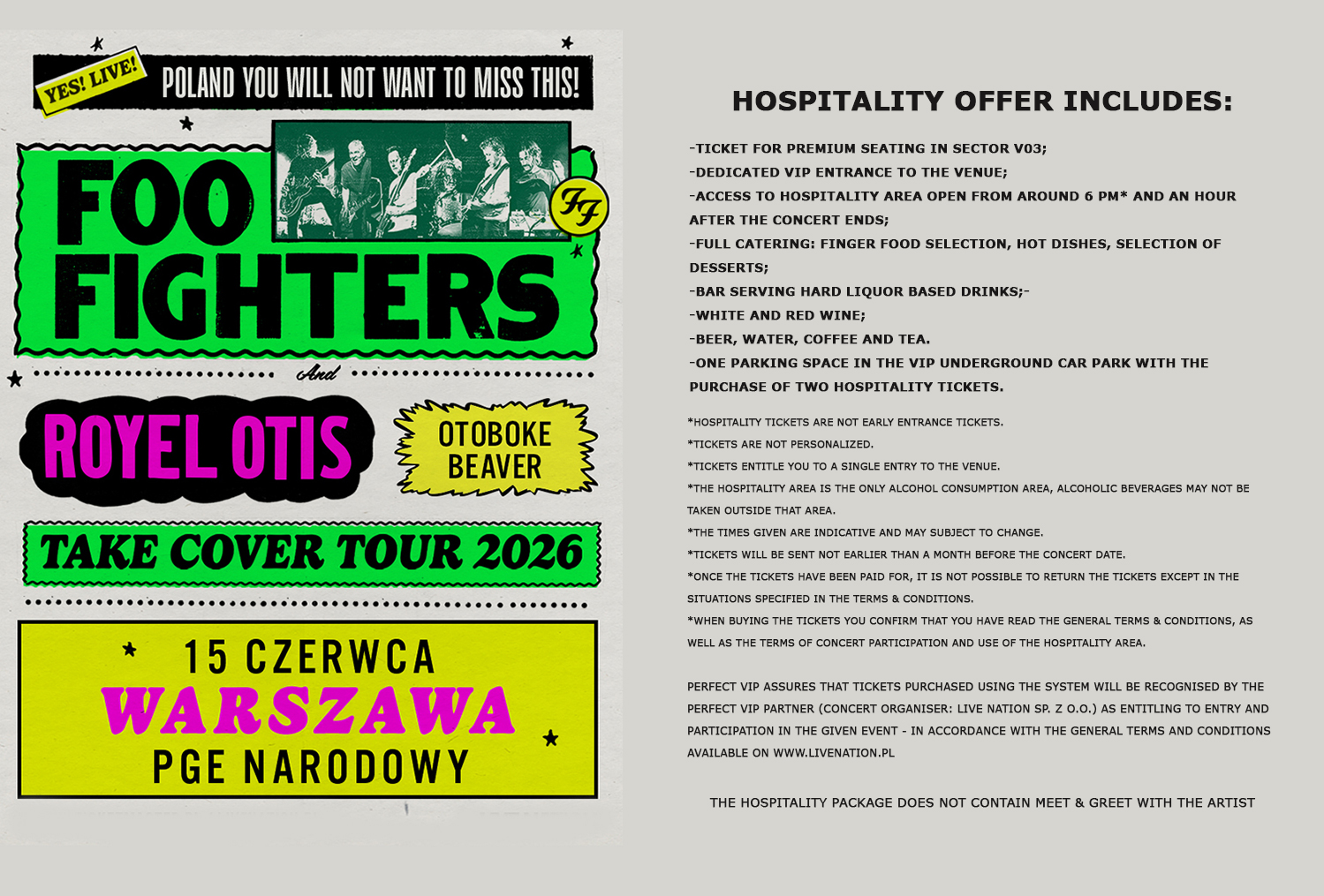 Perfect Hospitality sp. z o. o. assures that Tickets purchased with the use of the System will be recognised by Perfect Hospitality's partner (Event organiser: Live Nation sp. z o. o.) as entitling to enter and participate in an Event - in accordance with the Regulations of participation in an Event available at www.livenation.pl.