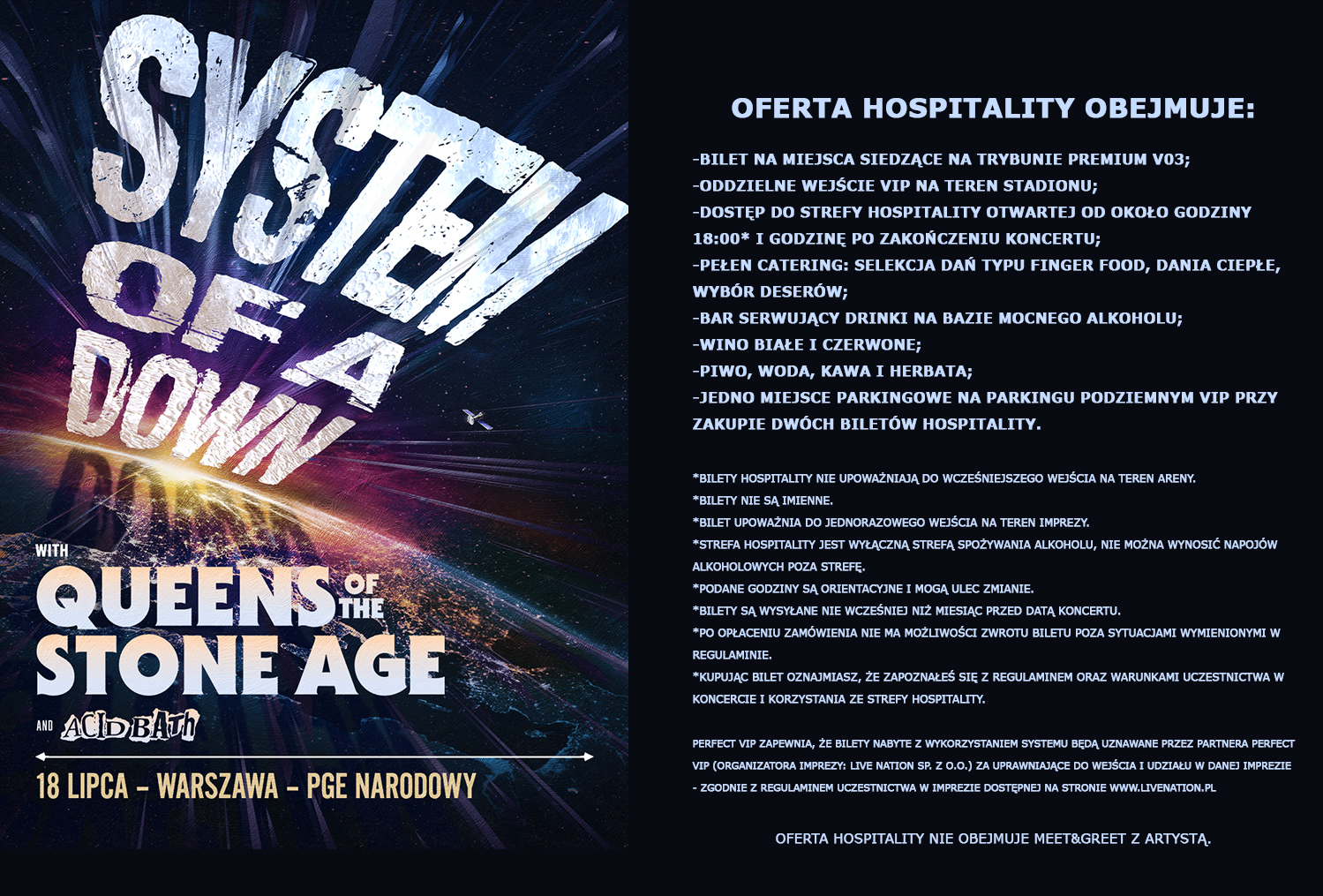Perfect VIP conducts through the System the sale of Tickets for the Event carried out by Perfect VIP's partner (Event organiser: Live Nation sp. z o. o.). Therefore Perfect VIP declares that: a) it is not the organiser of the Event; as well as b) it is not responsible for the course of the Event.