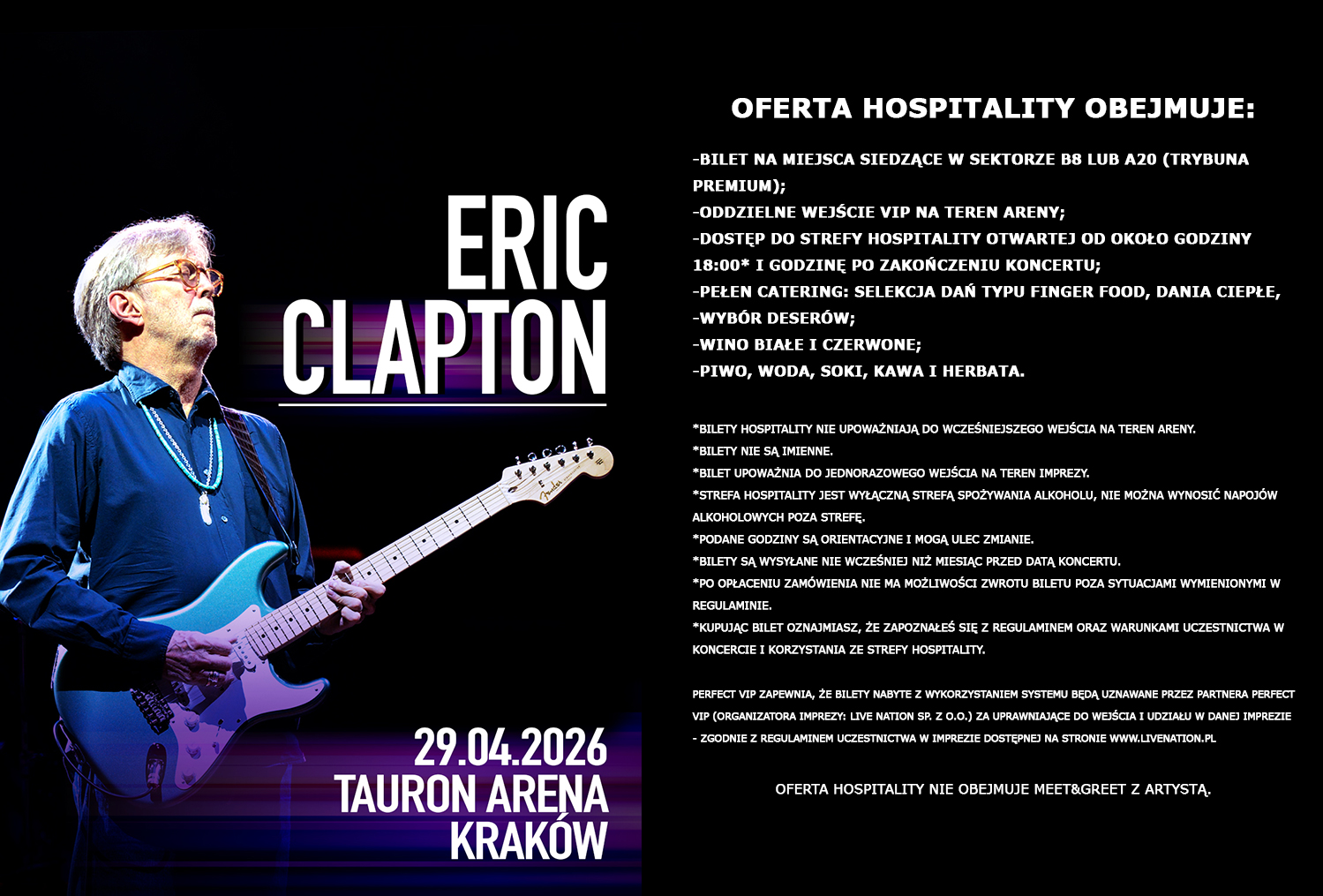 Perfect Vip prowadzi za pośrednictwem Systemu sprzedaż Biletów na Imprezę realizowaną przez partnera Perfect Vip (organizatora Imprezy: Live Nation sp. z o. o.). W związku z powyższym Perfect Vip oświadcza, że: a) nie jest organizatorem Imprezy; jak również b) nie jest odpowiedzialny za przebieg Imprezy.